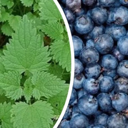 ビルベリーには、ビタミンA、C、E、K、食物繊維、亜鉛、銅、カリウム、マグネシウム、鉄、マンガンが豊富に含まれ、特に免疫システムを高め、感染を防ぎ、さらに解毒効果をもたらすアントシアニンも豊富に含まれています。イラクサには、たんぱく質、豊富な食物繊維とカルシウム、マグネシウム、カリウム、リン、鉄と大量のビタミンC、葉酸、カロチノイド、とビタミンA、K、Eが含まれています。